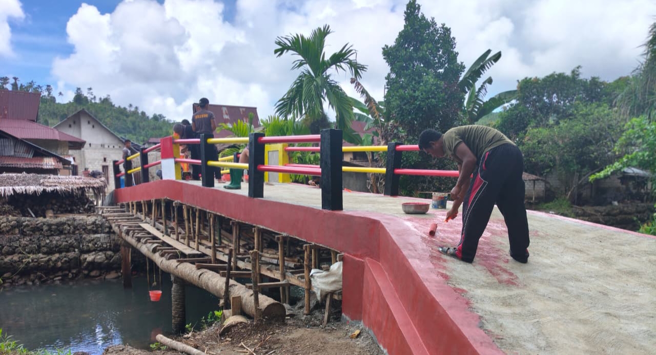 HALUT — HabarIndonesia.id – Kepolisian Daerah Maluku Utara menuntaskan pembangunan Jembatan Merah Putih Polri di Desa Salube, Kecamatan Loloda Kepulauan, Kabupaten Halmahera Utara (Halut).