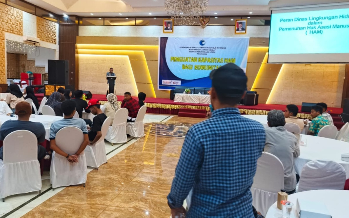 Hal tersebut disampaikan oleh Syarif Tjan, Kepala Bidang Pengendalian Pencemaran dan Kerusakan Lingkungan, saat menjadi narasumber dalam kegiatan Diskusi Penguatan Kapasitas HAM bagi Komunitas di Wilayah Tahun 2026 yang diselenggarakan oleh Kementerian Hak Asasi Manusia Republik Indonesia Kantor Wilayah Papua Barat dengan wilayah kerja Maluku Utara.