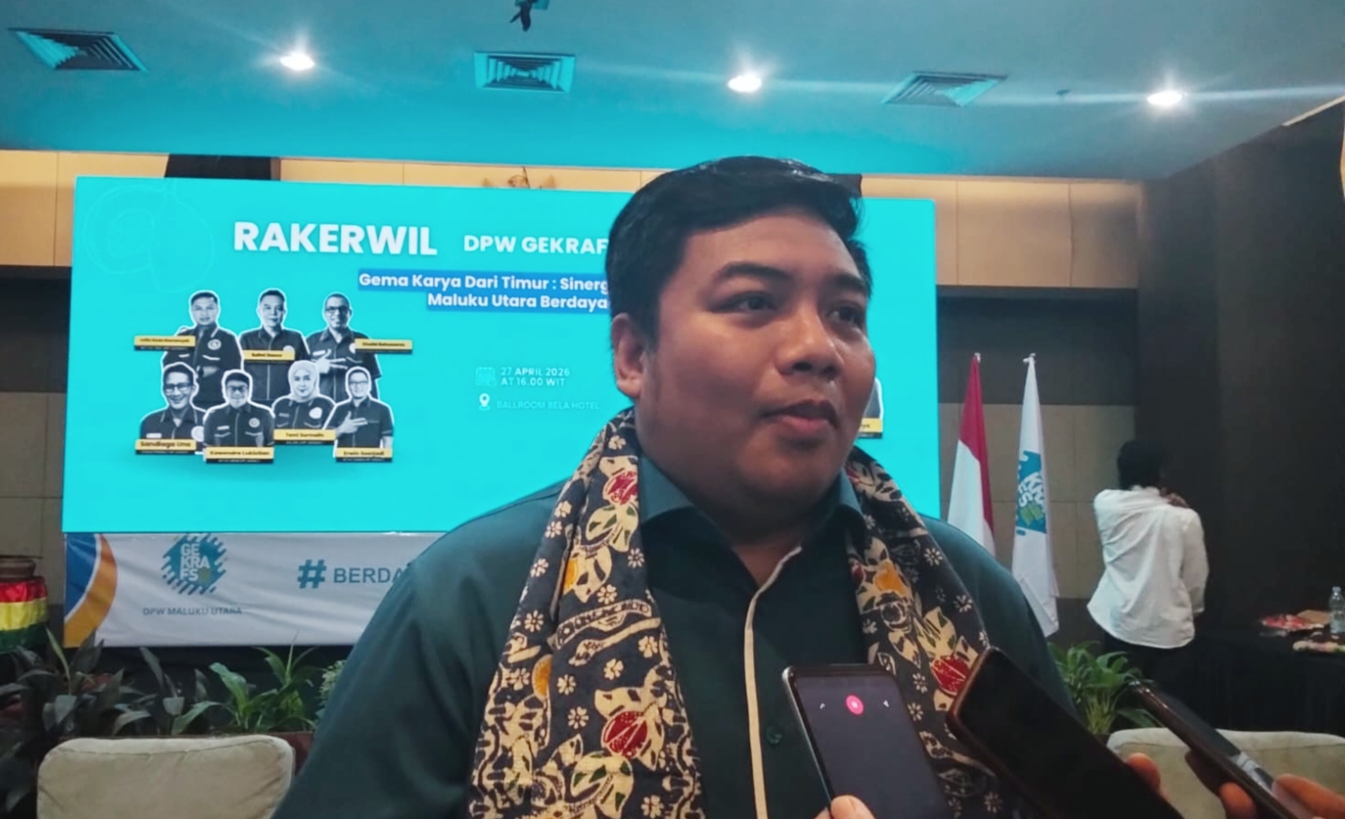TERNATE — HabarIndonesia.id – Dewan Pimpinan Wilayah (DPW) Gerakan Ekonomi Kreatif Nasional (GEKRAFS) Maluku Utara sukses menggelar kegiatan TakeShou yang dirangkaikan dengan Rapat Kerja Wilayah (Rakerwil) periode 2026–2029 di Ballroom Bela Hotel, Kota Ternate, Senin (27/04/2026).