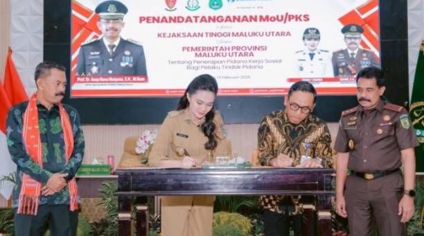 TERNATE – HabarIndonesia.id – Pemerintah Provinsi Maluku Utara bersama Kejaksaan Tinggi Maluku Utara resmi menandatangani Nota Kesepahaman (MoU) tentang kerja sama pelaksanaan pidana kerja sosial bagi pelaku tindak pidana.