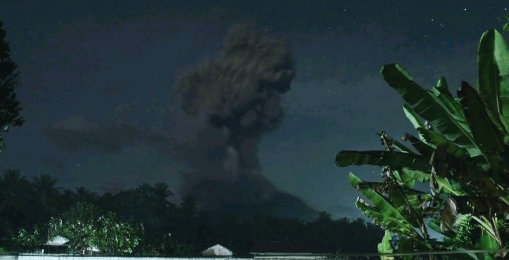Halbar–HabarIndonesia. Gunung Ibu di Halmahera Barat, Maluku Utara, kembali mengalami erupsi pada Minggu 09/03/25 malam hari.