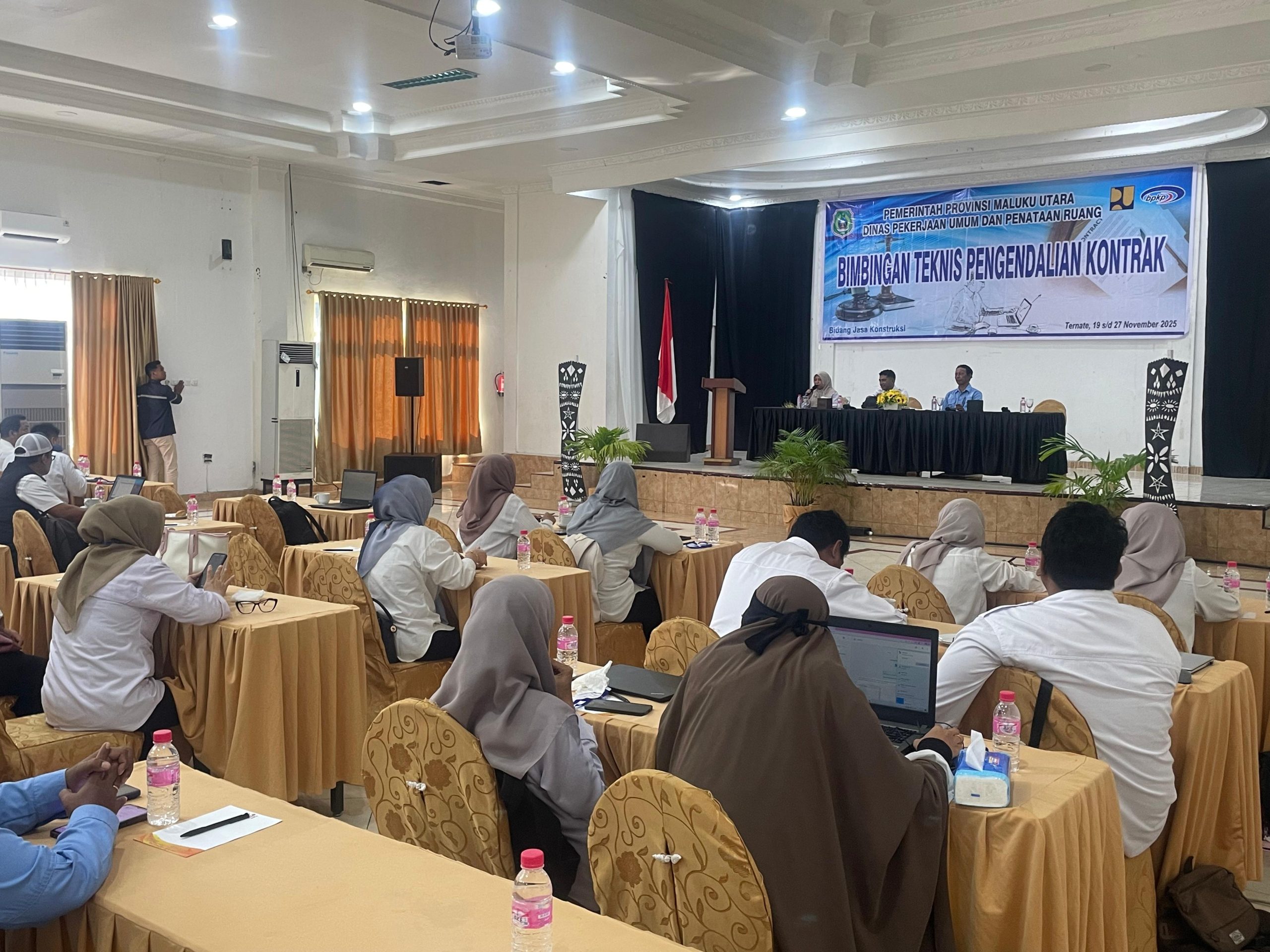 Salah satu langkah strategis yang dilakukan adalah penyelenggaraan Bimbingan Teknis Pengendalian Kontrak, Pelatihan Penyusunan RAB, dan Harga Perkiraan Sendiri (HPS) yang telah memasuki hari keempat pelaksanaannya di Hotel Jati, Kota Ternate. Rabu, 26/11/25.