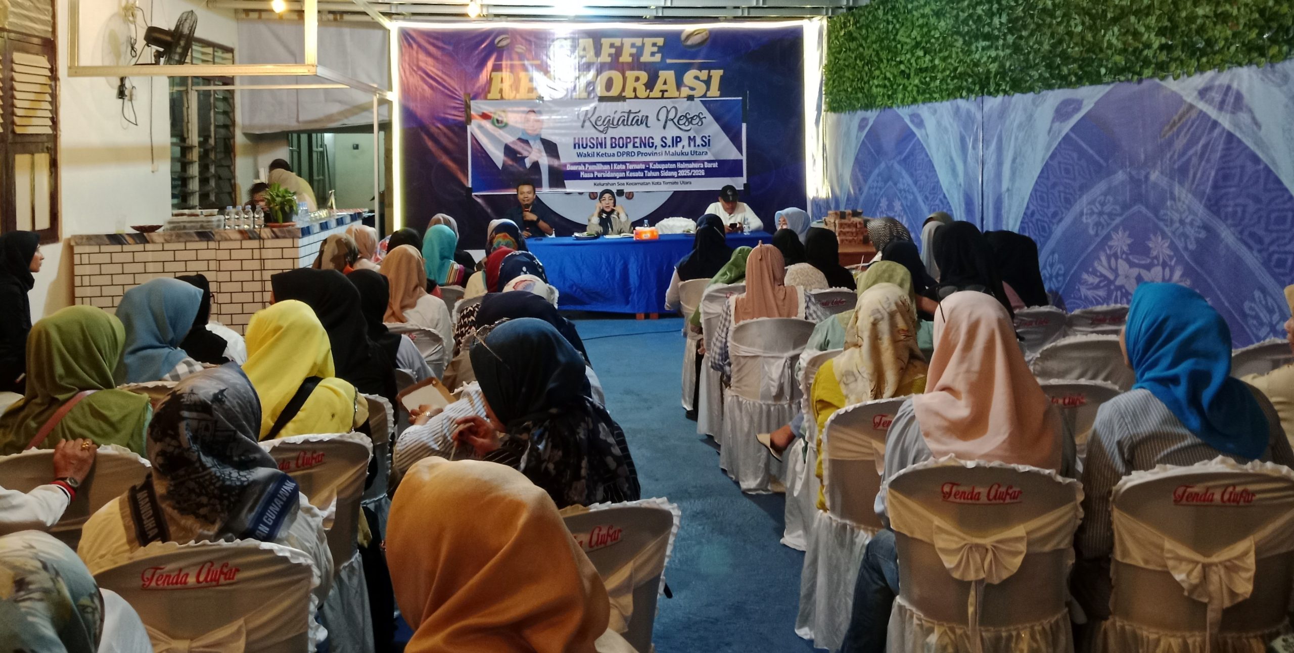 TERNATE – HabarIndonesia.id – Anggota DPRD Provinsi Maluku Utara dari Partai NasDem, Daerah Pemilihan (Dapil) I Ternate–Halmahera Barat, Hj. Husni Bopeng, menggelar kegiatan reses di Kelurahan Kampung Makasar Timur, Kota Ternate. Kamis, 29/01/26.