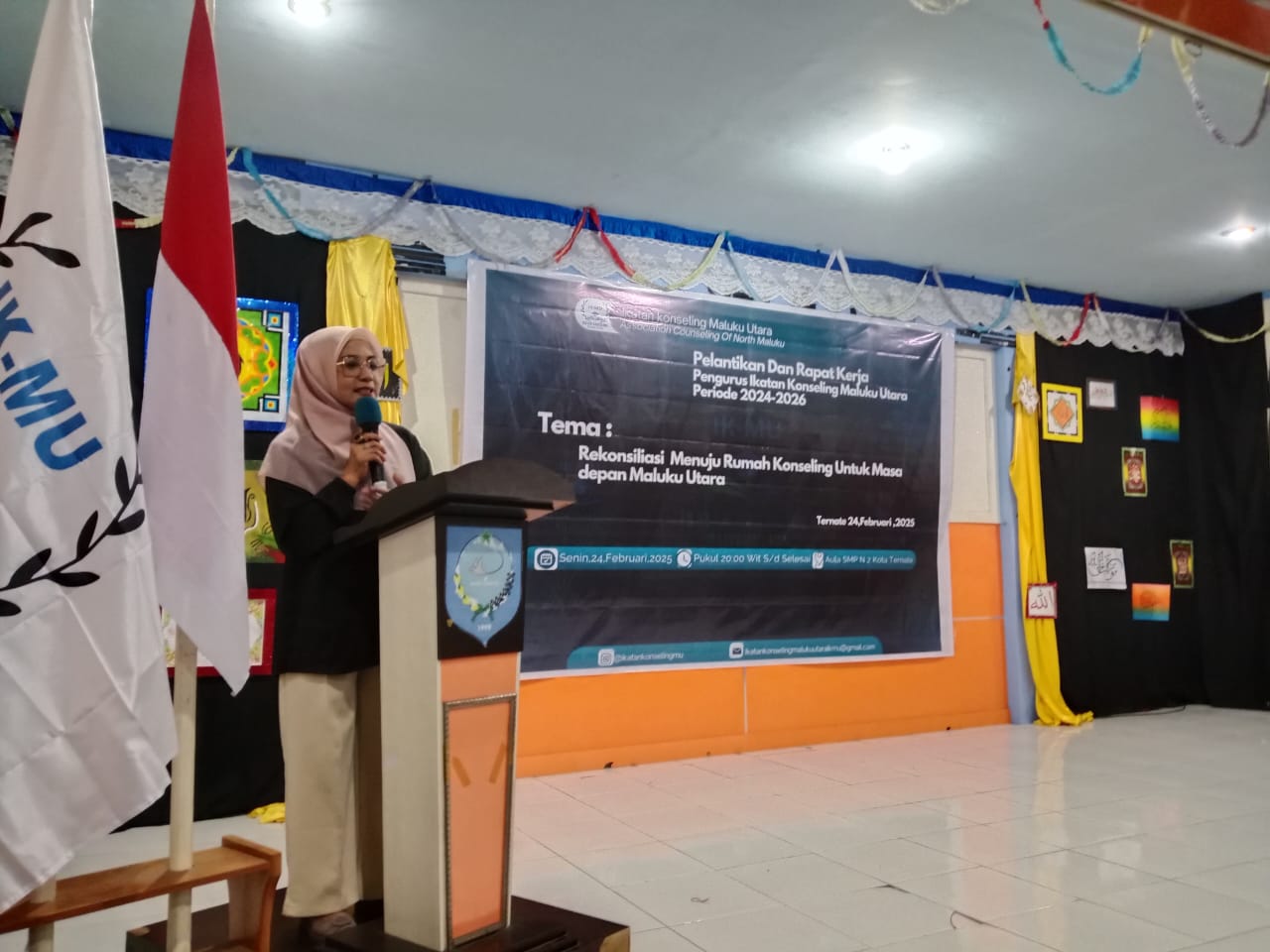 Ternate-Habarindonesia. Pengurus Ikatan Konseling Maluku Utara periode 2024-2026 resmi dilantik dalam sebuah acara yang berlangsung di Aula SMP Negeri 2 Kota Ternate. Acara tersebut mengusung tema “Rekonsiliasi Menuju Rumah Konseling untuk Masa Depan Maluku Utara” dihadiri oleh seluruh jajaran dan pengurus, guru, serta tokoh masyarakat, serta perwakilan DPRD Provinsi Hj. Husni Bopeng dan Firman Mudaffar Sjah yang turut menghadiri acara pelantikan, Senin 24/02/25.