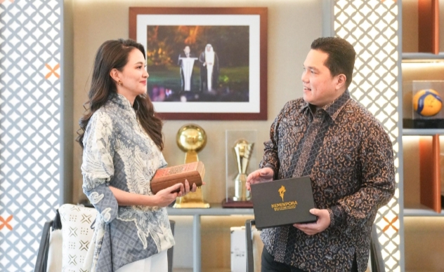 Pertemuan antara Gubernur Maluku Utara, Sherly Laos, dan Menteri Pemuda dan Olahraga, Erick Thohir, berlangsung di Kantor Kemenpora, Senayan, Jakarta, pada Jumat (17/4/2026).